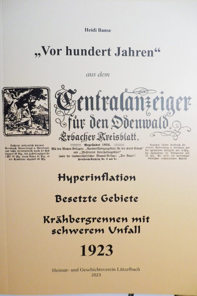 Dies und noch mehr steht im „Büchelsche“: „Vor hundert Jahren – aus dem Centralanzeiger 1923“. Herausgegeben wird das 60 Seiten starke Werk vom Heimat- und Geschichtsverein Lützelbach und kann über den örtlichen Buchhandel und über hgv@ourewald.de zum Preis von sechs Euro bestellt werden. red
