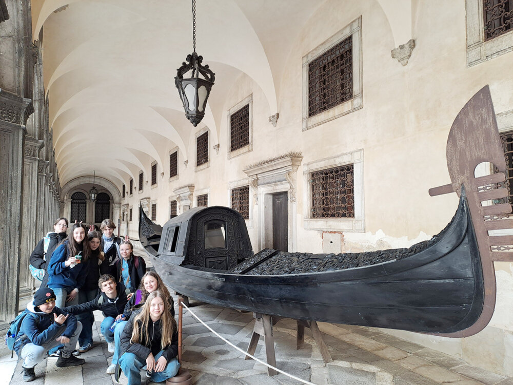 In einer der ältesten und traditionsreichsten Gondelwerften der Stadt erfuhren sie, wie Gondeln einst gebaut wurden und bis heute entstehen. Als Highlight überquerten die Jugendlichen mehrmals in einer Gondel den Canal Grande.