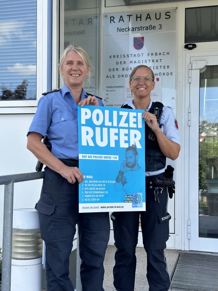 Erbach. In den letzten Tagen haben Ariane Lutz von der Stadtpolizei Erbach und Polizeihauptkommissarin Carina Oberle, die Schutzfrau vor Ort von der Polizeistation Erbach, gemeinsam mehrere Plakate an Bushaltestellen im Innenstadtbereich von Erbach angebracht.