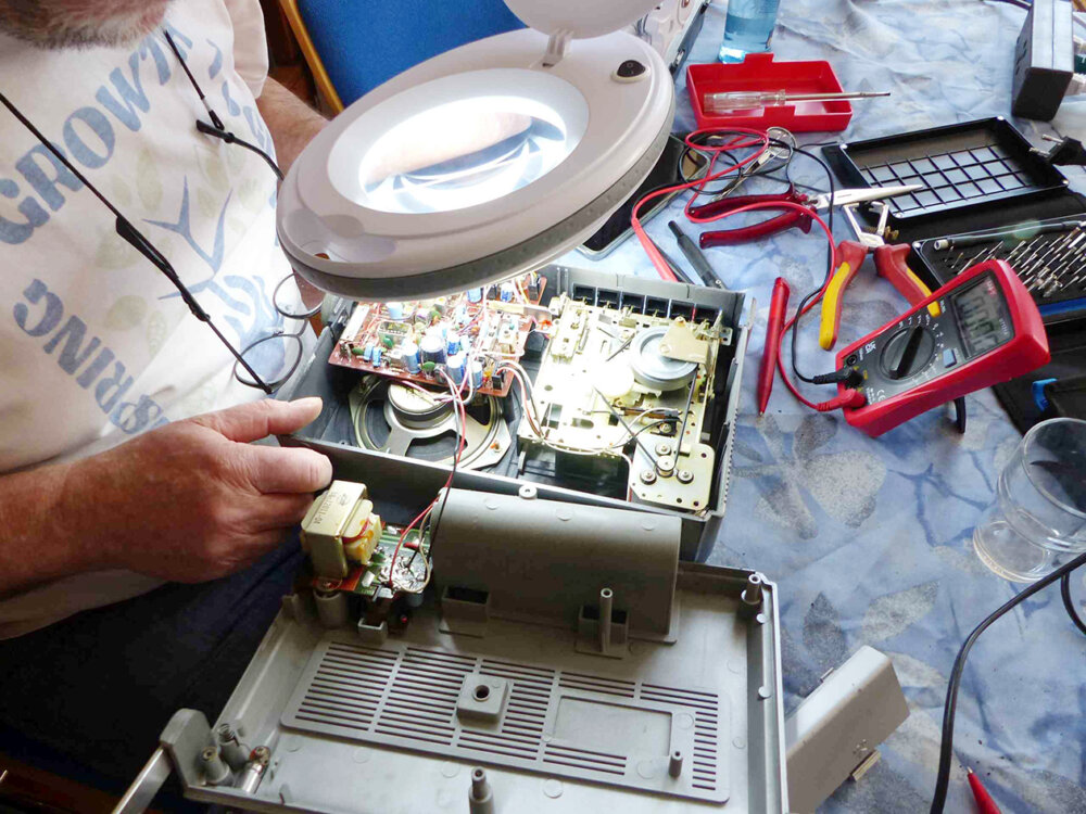 Die zwei Reparateure Thomas Glaser und Dieter Ludebühl kümmerten sich um Staubsauger, CD-Player, alte Uhren, Saugroboter, Stabmixer und weitere elektrische Geräte. Über 80 Prozent der Dinge konnten wieder instandgesetzt werden.